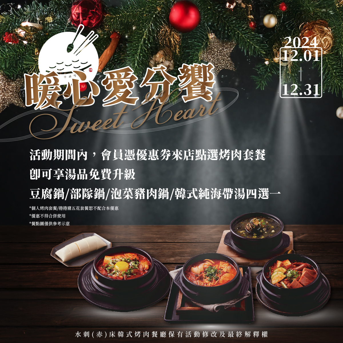 -- 수라상韓式烤肉餐廳保有活動修改及最終解釋權